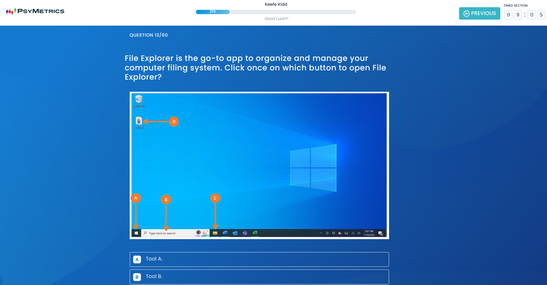 The Office Skills-Windows Skills Test assesses an individual's skill level in File Management and the general use of the Windows Operating System. Scores for Basic, Intermediate and Advanced levels are provided.